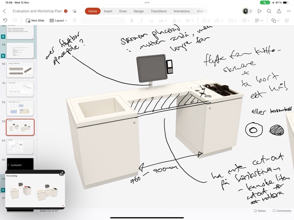 The insights were then brought into a hands-on workshop where we sketched, discussed, and prototyped together. Guided by the Accessibility Principles, we translated learnings into concrete decisions around store layout, furniture dimensions, spacing, and hardware placement. As one of the furniture designers reflected at the end of the day: