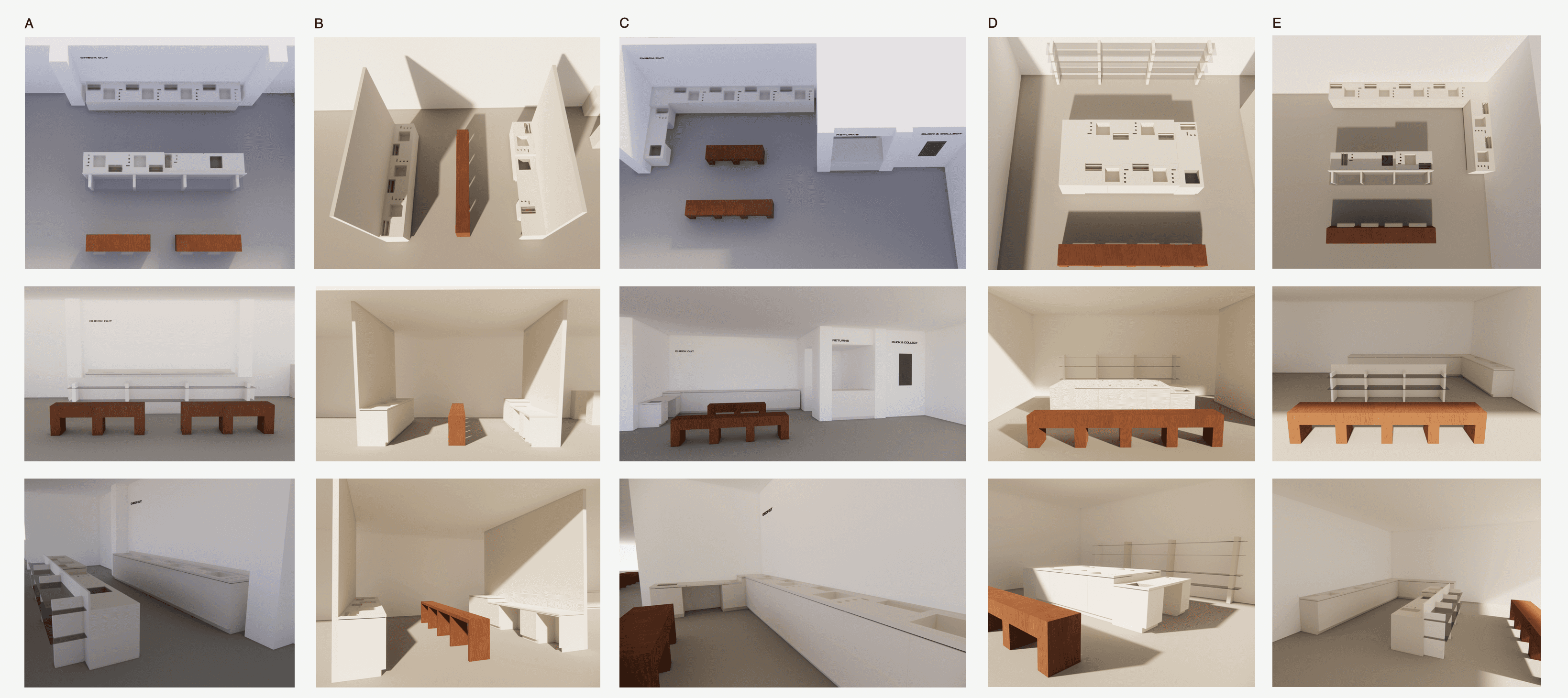 We defined a set of layout directions to be explored depending on the character and constraints of each store. Across all variations, the layouts are designed to make it clear that: